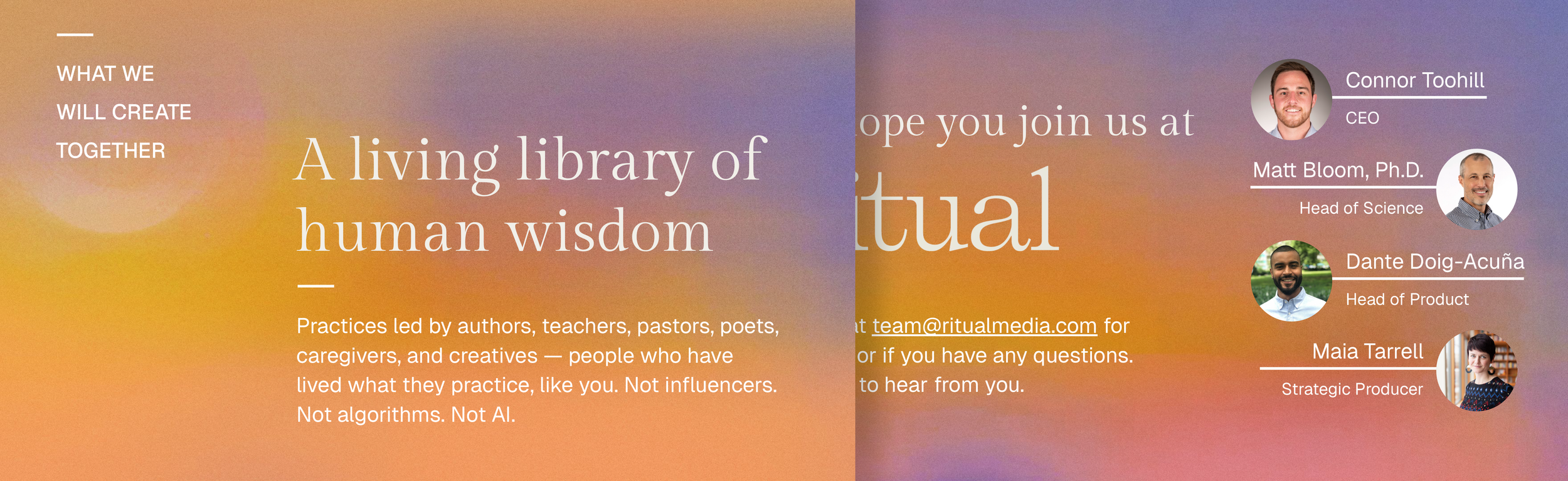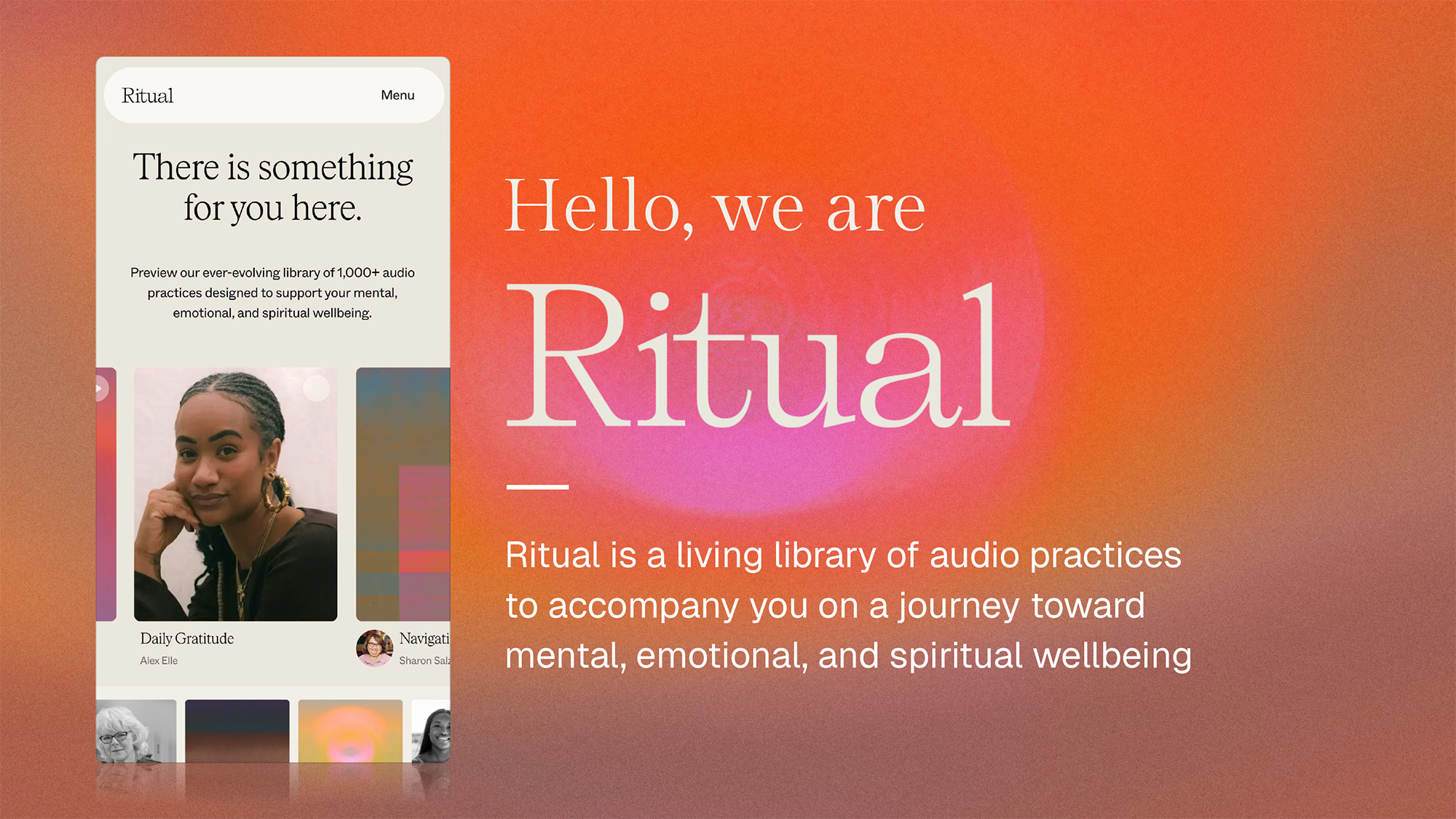 Ritual is a wellbeing platform offering guided wellbeing & spiritual practices from the world’s leading experts. They partner with leaders in science, faith & culture to create guided audio experiences. This presentation deck was developed using their brand guidelines to support outreach efforts to potential new partners.