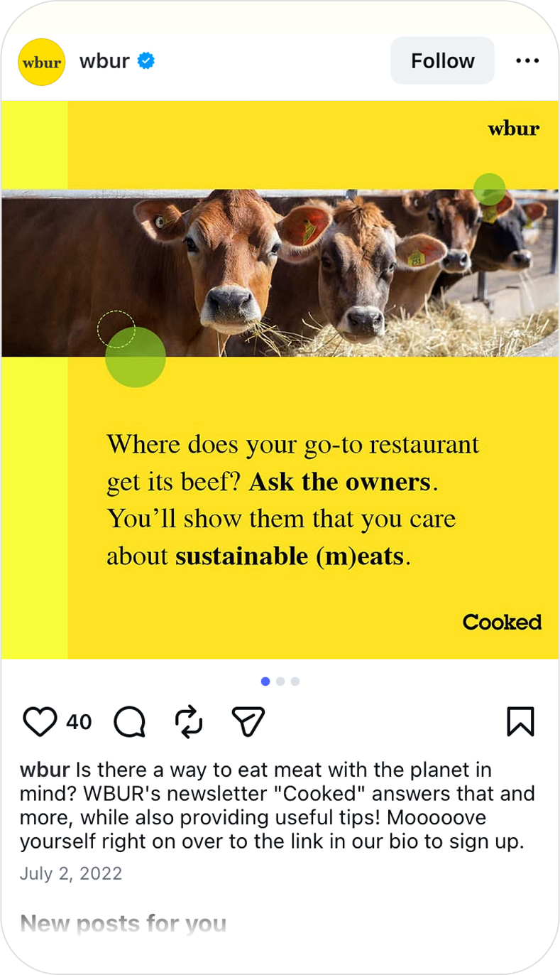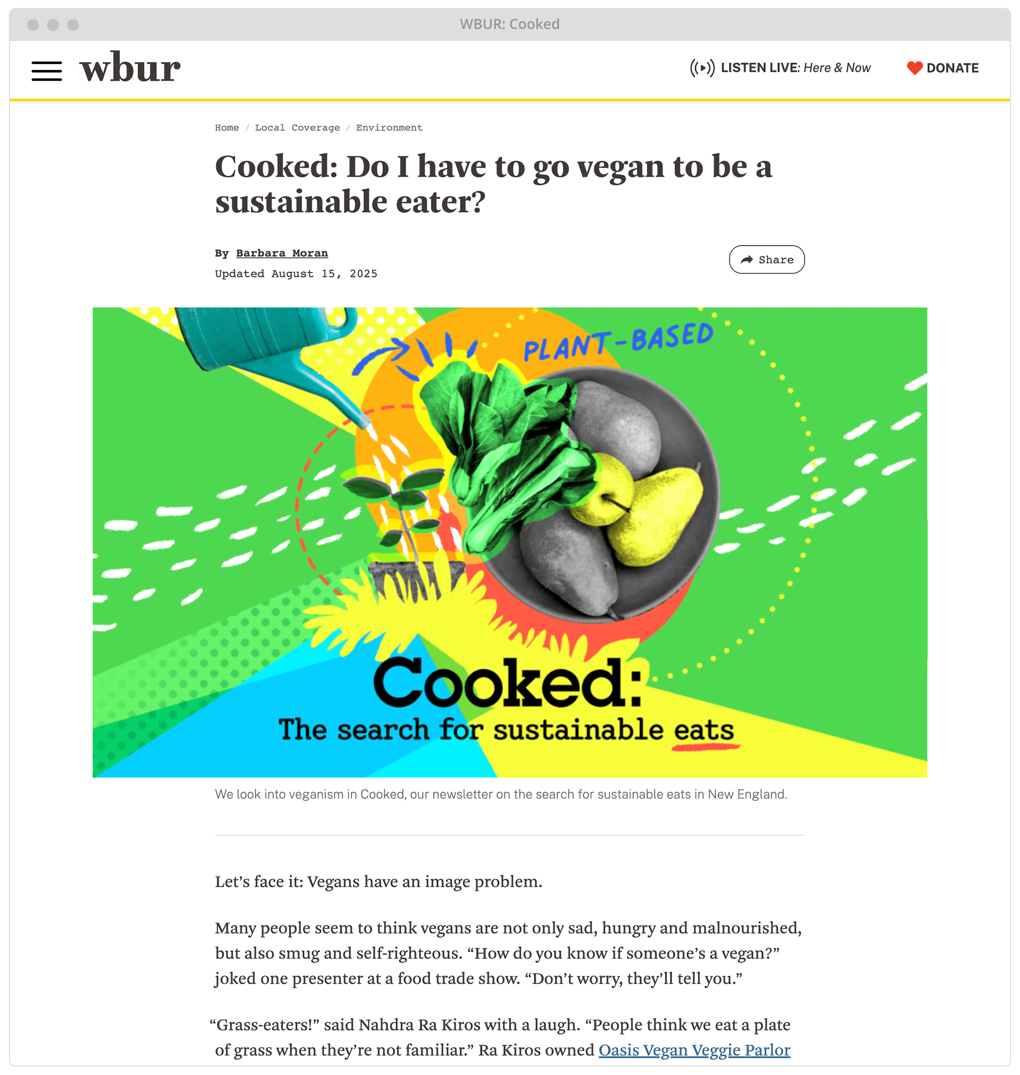 Cooked: The search for sustainable eats is a newsletter series from WBUR’s Environmental Team to help New England readers understand the environmental and social impact of what they eat. It gives readers advice, tips, recipes for making more sustainable choices.
